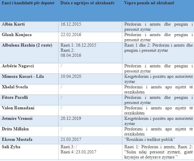 Pra, ka mundësi, sikurse ka ndodhur në praktikën gjyqësore, që të ketë aktakuza të ngritura ndaj politikanëve të caktuar, që mund të jenë në këto lista, por të cilat nuk janë bërë publike ende. Gjithsesi, IKD do të hulumtojë edhe ditët në vazhdim, për të kompletuar secilin informacion mbi secilin kandidatë që gjendet në listat zgjedhore.