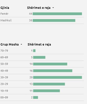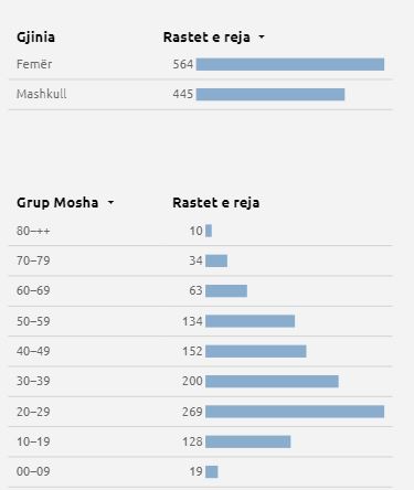 34 të infektuar i takojnë moshës 70-79 vjeçare, ndërsa 63 persona i takojnë moshës 60-69 vjeçare.