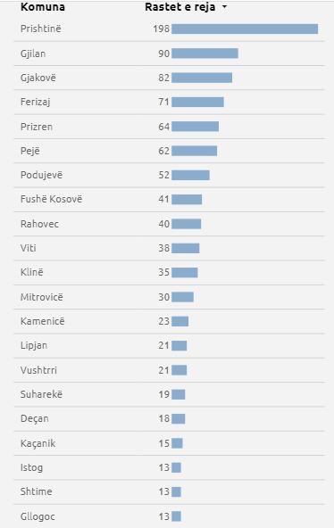 I dyti me më së shumti raste të reja është Gjilani me 90, pastaj Gjakova me 82 dhe Ferizaj me 71.