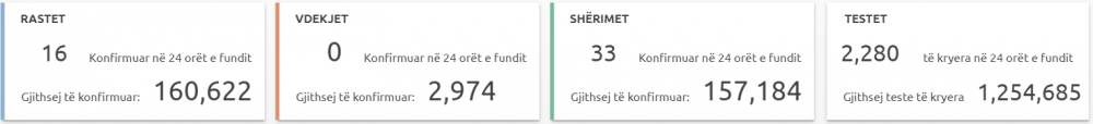 Po ashtu, nga kjo periudhë janë konfirmuar gjithsej 160 mijë e 622 raste.