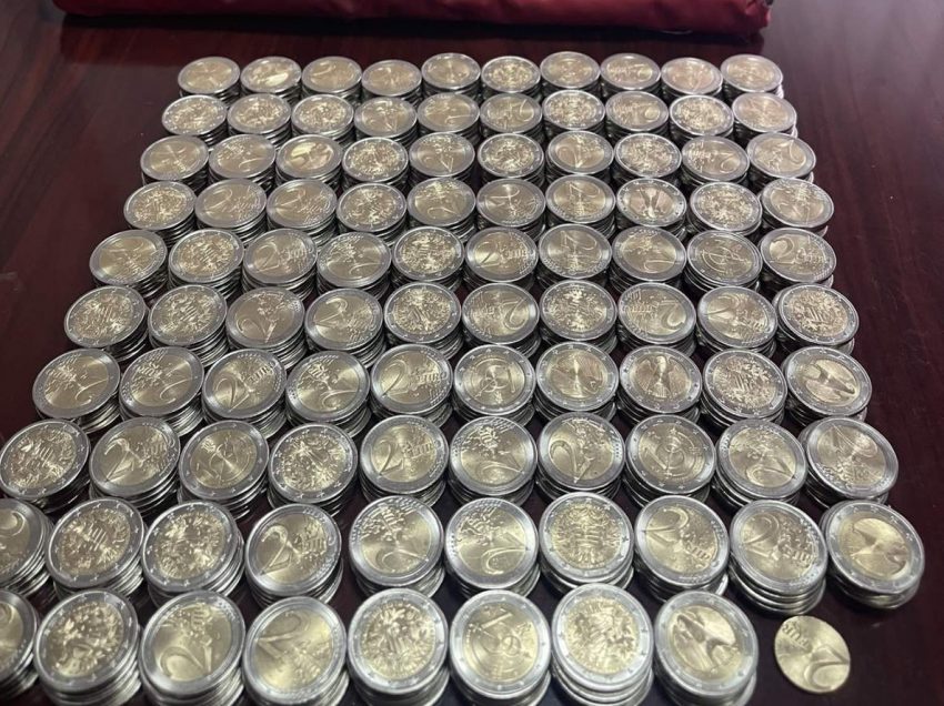 “Sot me datë 17.10.2023, Njësiti për Reagim të Shpejtë (NJRSH-Prishtinë) gjatë realizimit të detyrave policore në një pikë kontrolli në Prishtinë, ka ndaluar automjetin Audi A4 I cili po drejtohej nga personi A.B., m/k (viti I lindjes 1997), ku gjatë kontrollit në bagazh i është gjetur një sasi e konsiderueshme e monedhave metalike nga 2 €uro, për të cilat ekziston dyshimi i bazuar se janë të falsifikuara”, thuhet në njoftim.