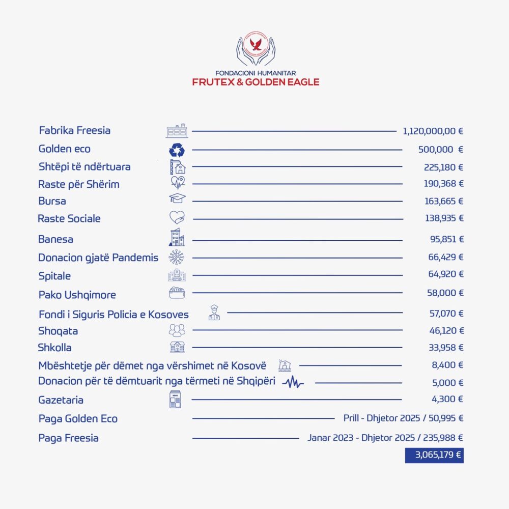 Fondacioni Frutex & Golden Eagle shënon 10-vjetorin e themelimit të tij, duke përmbyllur një dekadë angazhimi të vazhdueshëm në mbështetje të komunitetit shqiptar në Kosovë, Shqipëri, Maqedoninë e Veriut dhe në të gjitha vendet ku jetojnë shqiptarë.