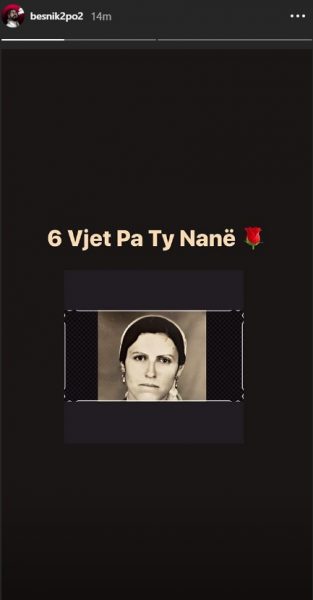 “6 vite pa ty nanë” shkruan pranë një fotografie ku shihet tashmë e ndjera, e më pas e ka publikuar një nga këngët e publikuar në vitin 2018.