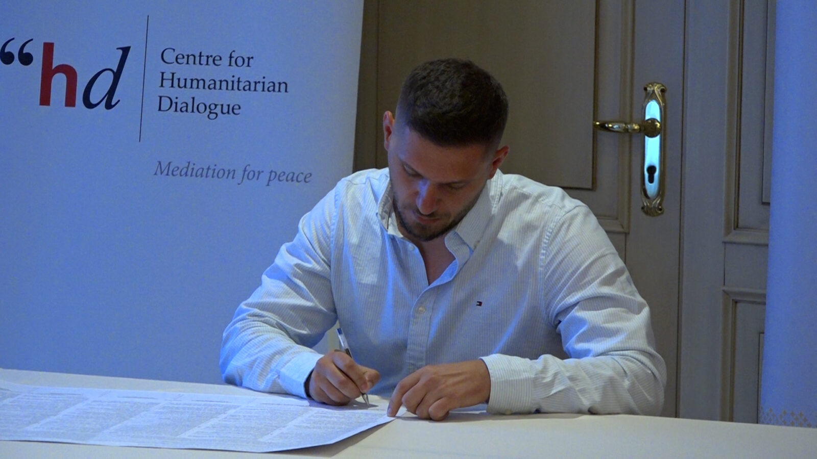 “Së pari, për ata që nuk e dinë, Qendra për Dialog Humanitar është një organizatë e pavarur që ka lindur nga një pjesë shumë e vogël e Komitetit Ndërkombëtar të Kryqit të Kuq mbi 25 vjet më parë. Ideja ishte të ndihmohej në zbutjen e konflikteve të dhunshme përmes ndërmjetësimit diskret, për të ndihmuar palët në konflikt të identifikojnë interesa të përbashkëta që të mund të përfundojnë konfliktet. Ne punojmë globalisht. Kemi mbi 350 kolegë në mbarë botën, nga Azia Juglindore deri në Afrikë, Lindjen e Mesme dhe Euroazi. Në Ballkan kemi punuar, me ndërprerje, për rreth 15 vjet. Kjo është Qendra për Dialog Humanitar, ose siç e quajmë shpesh, HD.