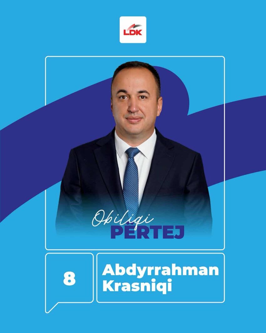 Abdyrrahman Krasniqi, drejtori i DMM-së në Komunën e Obiliqit dhe magjistër i diplomuar në Universitetin e Vjenës, ka fituar zgjedhjet për herë dytë radhazi si asambleist në Kuvendin Komunal të Obiliqit.