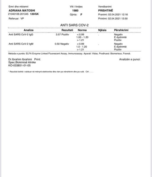 Më pas e njëjta ka publikuar rezultatin e testit në profilin e saj në Facebook, teksa ka thënë: