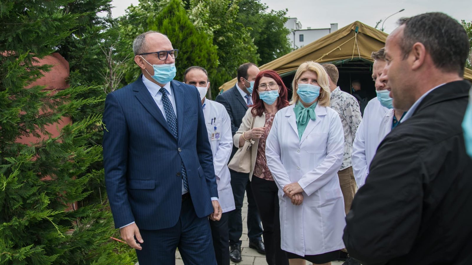 Kryetari Aliu gjatë vizitës që i bëri mjekët e infermierët e Qendrës Kryesore të Mjekësisë Familjare dhe Spitalit të Përgjithshëm të Ferizajt, i inkurajoi mjekët që ti qëndrojnë nga afër cdo personi që ka nevojë.