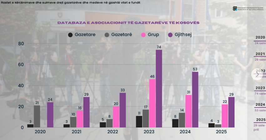 Statistikat tregojnë se gazetarët në Kosovë vazhdojnë të përballen me sfida serioze në ushtrimin e profesionit të tyre. AGK rithekson se gazetarët duhet të lejohen të punojnë të lirë dhe pa pengesa, në shërbim të interesit publik.