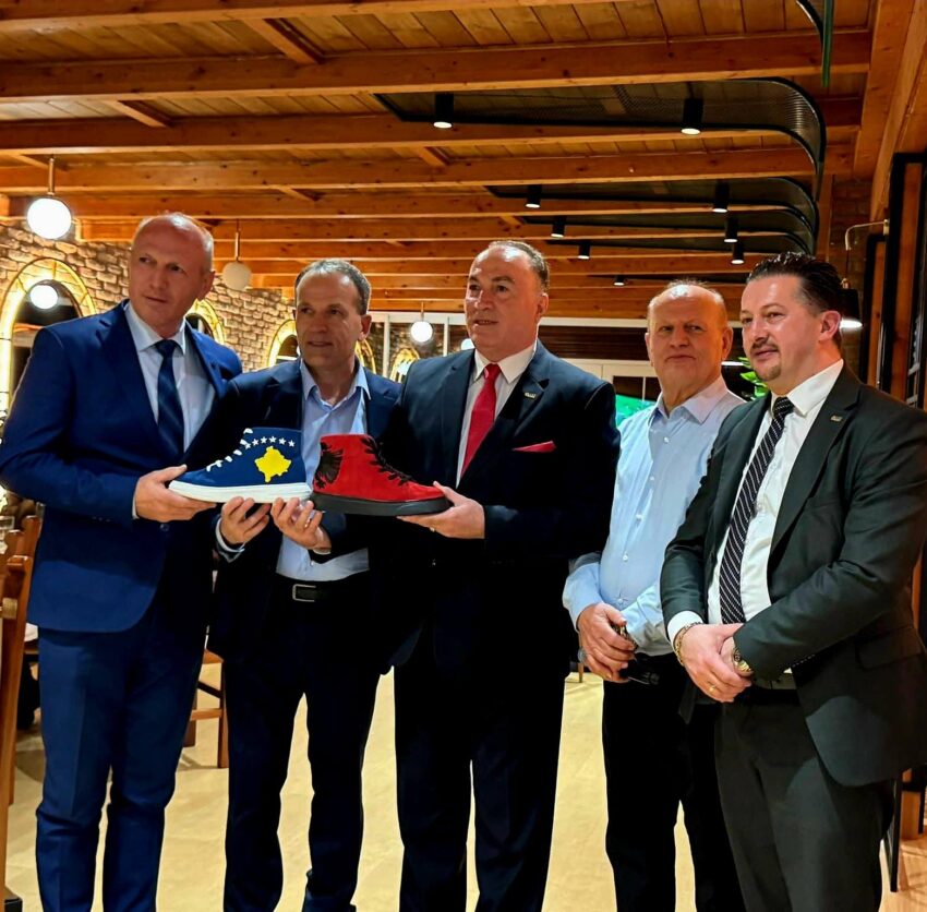 Në shenjë respekti dhe bashkëpunimi kombëtar, delegacioni i AKB-së i dhuroi pronarit të resortit një palë këpucë të qëndisura me flamurin e Kosovës dhe të Shqipërisë, prodhim vendor “Made in Kosova” nga kompania Solid me seli në Suharekë.