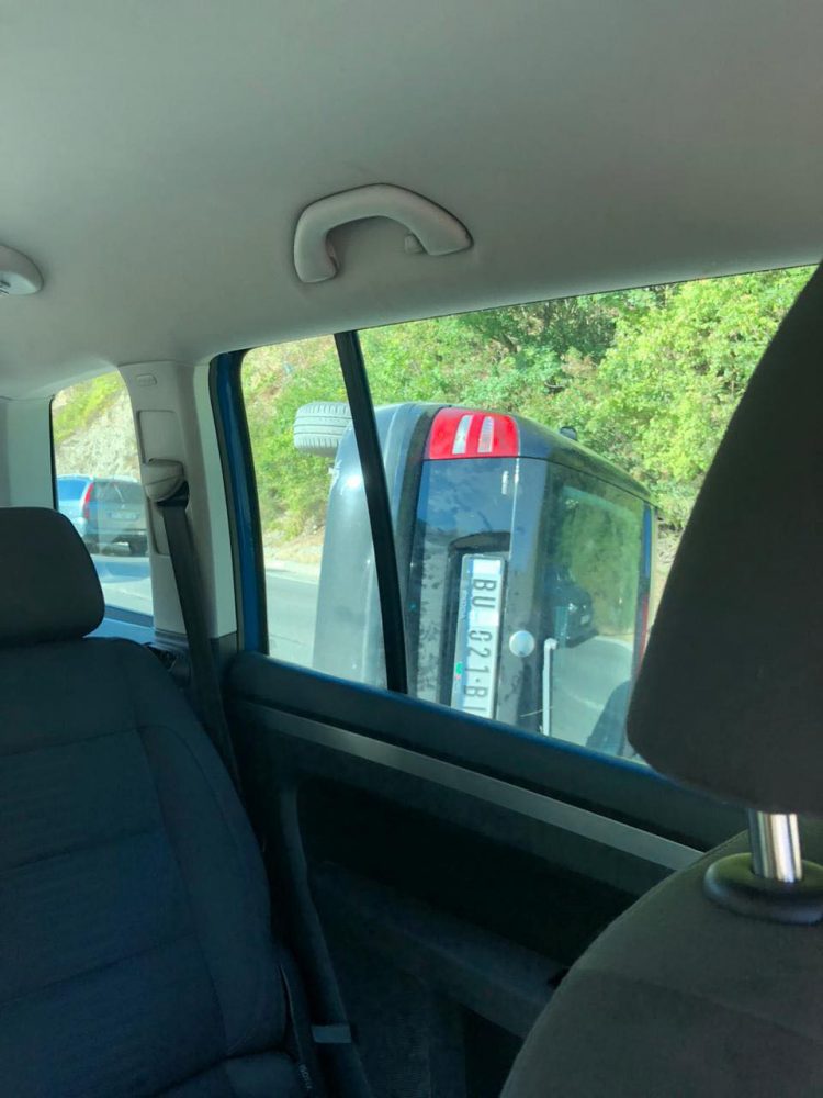 Ekonomia Online ka siguruar fotografit nga vendi i ngjarjes, e ku sipas pamjeve shihet një veturë e rrotulluar me targa te huaja.