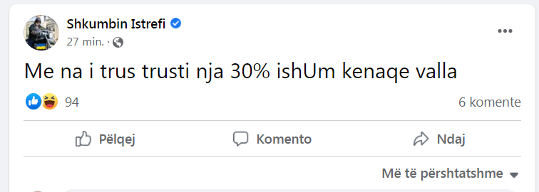 “Me na i trus trusti nja 30% ishim kënaqe valla”, ka shkruar ai në një postim në “Facebook”.
