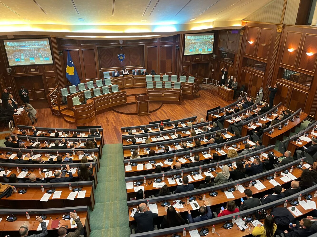 Pas kësaj ministrat zurën vendet, e pas himnit, Kurti bëri betimin si kryeministër.