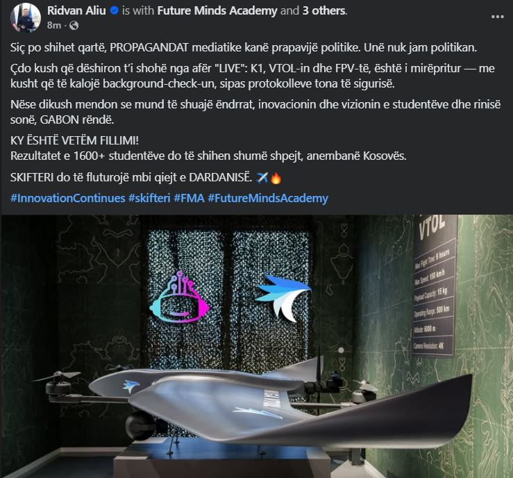 Ridvan Aliu insiston që droni “Skifter” nuk ishte një manipulim, e ku nëpërmjet një shkrimi në facebook ka bërë thirrje se kush dëshiron t’i shohë nga afër mund ta vizitojë kompaninë e tij, por thotë se duhet t’iu nënshtrohet protokolleve të tyre ë sigurisë.