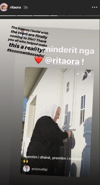 Ndërsa edhe Rita ka bërë një postim, duke thënë: “Shtëpitë që kam ndërtuar me ekipin më në fund janë jetësuar! Falemidnerit të gjtihëve që keni ndihmuar për ta realizuar këtë”.