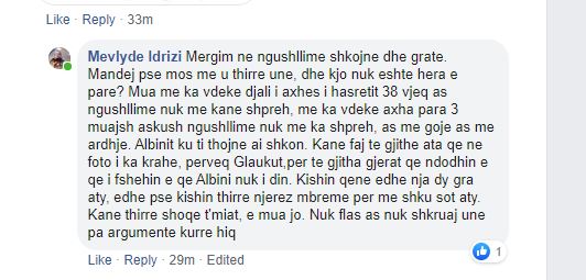 “Mua me ka vdeke djali i axhes i hasretit 38 vjeq as ngushllime nuk me kane shpreh, me ka vdeke axha para 3 muajsh askush ngushllime nuk me ka shpreh, as me goje as me ardhje. Albinit ku ti thojne ai shkon. Kane faj te gjithe ata qe ne foto i ka krahe, perveq Glaukut..”, ka shtuar ajo.