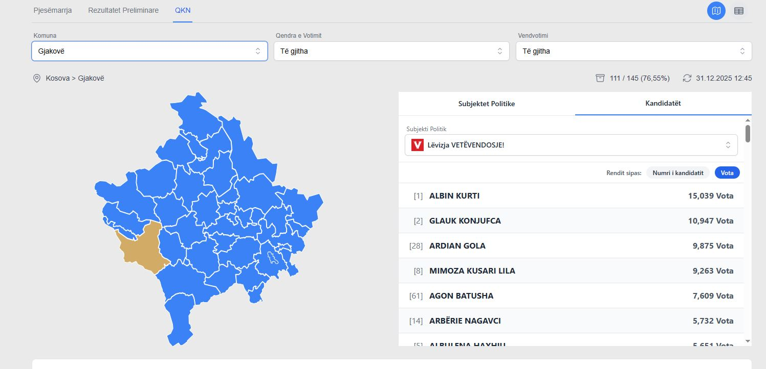 Ish kryetarja e Gjakovës aktualisht ka 9 mijë e 263 vota e para tij.