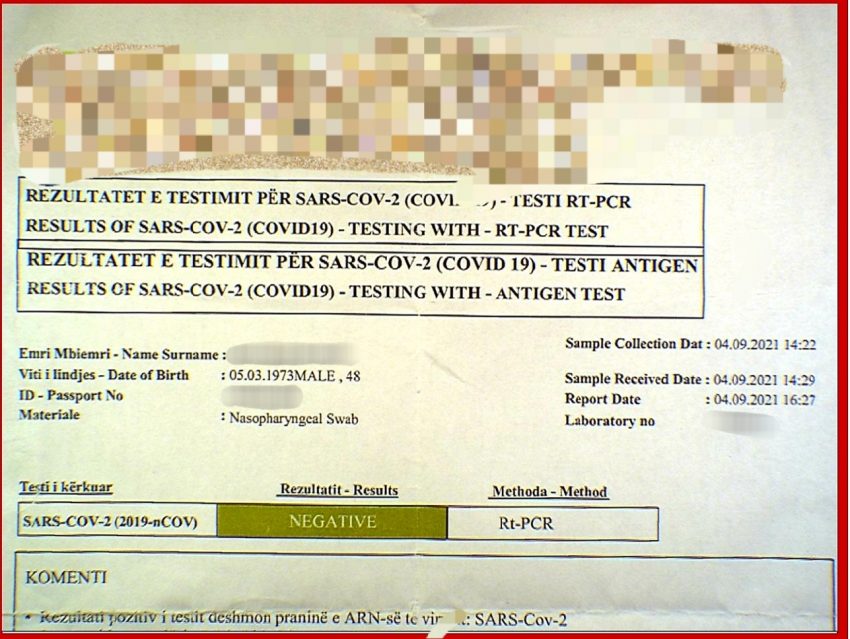 Sot, më 05.09.2021, rreth orës 14:45, në aeroportin ‘Adem Jashari’, dy persona: B.K., viti i lindjes 1973, mashkull kosovar dhe bashkëshortja e tij T.O., viti i lindjes 1976, shtetase italiane, në tentim për të udhëtuar për në Verona (Itali), kanë prezantuar dy dokumente (teste për COVID), të cilat dyshoheshin se mund të ishin të falsifikuara.