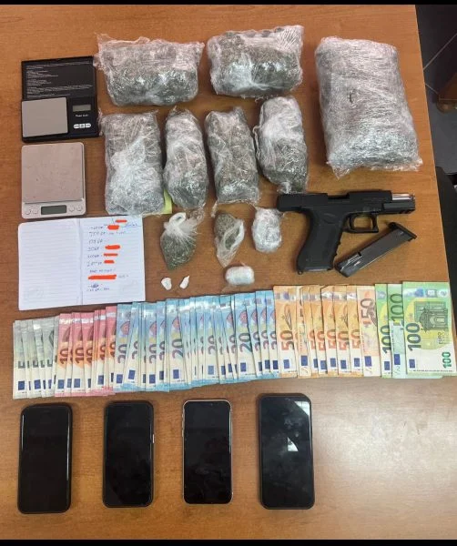 Gjatë kontrollit të personave dhe banesës të cilën e përdornin të dyshuarit, janë gjetur dhe konfiskuar:Dhjetë paketime, dyshohet të jetë marihuanë me peshe të përgjithshme 672.1 gr.,
