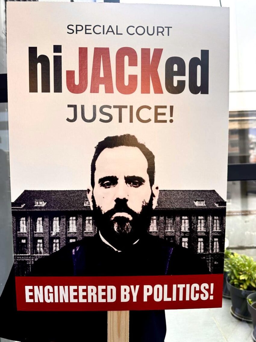Në një postim në rrjetet sociale, Behrami ka shpërndarë një pankartë me mbishkrimin “Gati për protestë me këtë pankartë. Protestë kundër drejtësisë së rrëmbyer dhe të politizuar nga Jack Smith.”