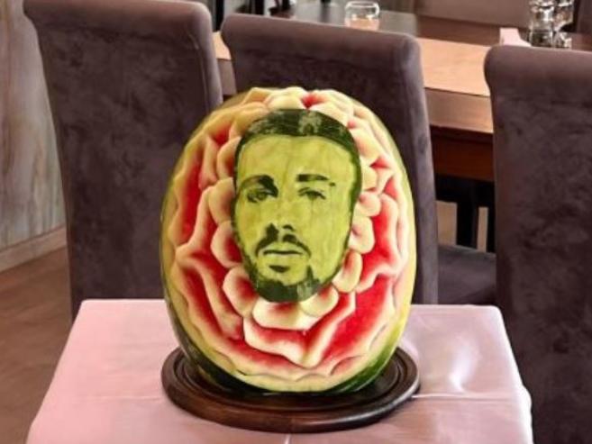 Artisti Shkëlqim Xhafa ka krijuar fytyrën e yllit të Kosovës në futboll, Edon Zhegrovës, në shalqi.