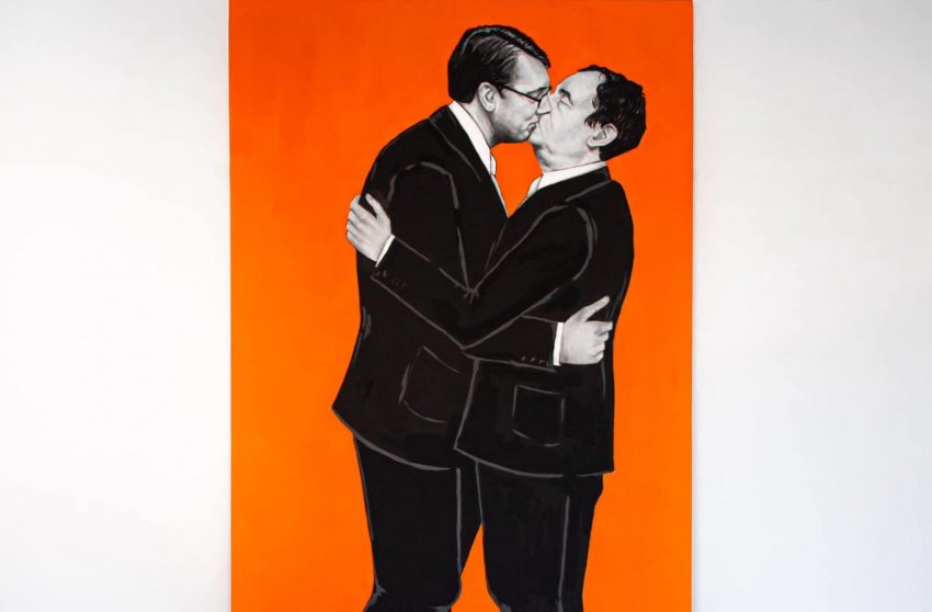 Piktura e Ermira Muratit, e cila është 3 metra e gjatë, shfaq kryeministrin e Kosovës, Albin Kurti dhe presidentin serb Aleksandar Vuçiq të përqafuar, duke puthur njëri-tjetrin në buzë me sy të mbyllur.
