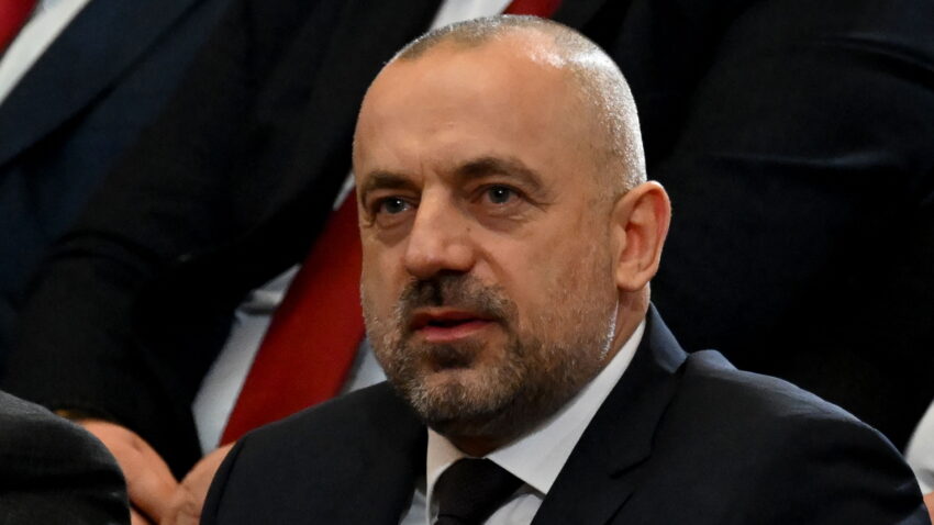 This photograph taken on February 2, 2023, shows Milan Radoicic, vice president of the Srpska Lista party, during a special parliament session at the National Assembly building in Belgrade. Milan Radoicic -- the long serving vice president of the Srpska Lista party -- admitted to leading the group of heavily armed gunmen into the area in northern Kosovo in September 2023, in response to alleged repression against Serbs by the Pristina government, his lawyer said on September 29, 2023. (Photo by Andrej ISAKOVIC / AFP)