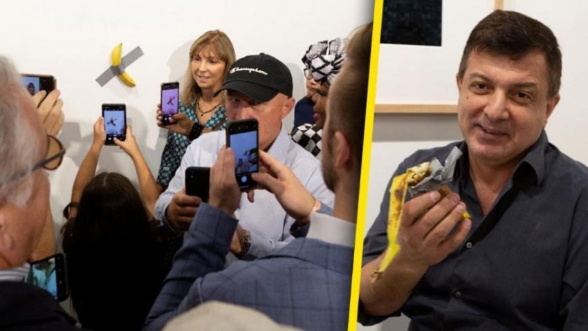 Një vepër arti e një bananeje të pjekur të ngjitur me shirit ngjitës në një mur që u shit për mbi 108 mijë euro, është ngrënë nga një artist tjetër performues.