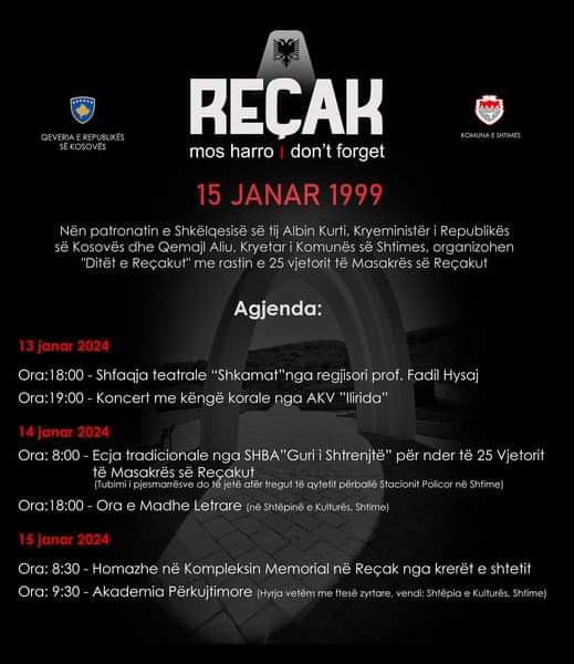 Njëra ndër masakrat më të rënda të luftës së Kosovës të 1998-99 që tronditi botën, ajo e 15 janarit të vitit 1999 në Reçak të Komunës së Shtimes, ka mbushur 25 vjet.