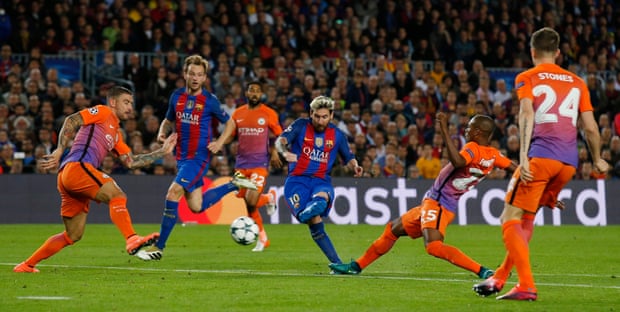 Pas një aksioni të organizuar nga vendasit, faza defensive e mysafirëve dështoi dhe ata pranuan gol. Lionel Messi ishte njeriu që shfrytëzoi rrëshqitjen e një futbollisti të Cityt dhe e kaloi portierin për të shënuar (17’).