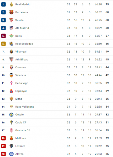 Tani në atë pozitë renditet Mallorca e Vedat Muriqit, me 29 pikë të grumbulluara deri më tani.