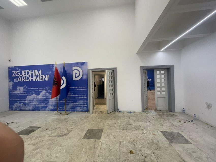 Sekretari i Përgjithshëm i PD Gazment Bardhi ka tentuar të negociojë me efektivët të lejojnë gazetarët të futen brenda.
