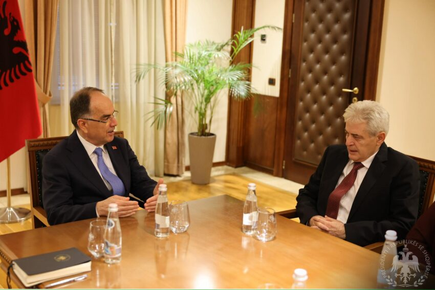 Presidenti i Republikës, Bajram Begaj, priti sot në një takim Ali Ahmeti, i cili ndodhet në Tiranë për të marrë pjesë në protestën e Organizatës së Veteranëve të Luftës së Ushtrisë Çlirimtare të Kosovës.