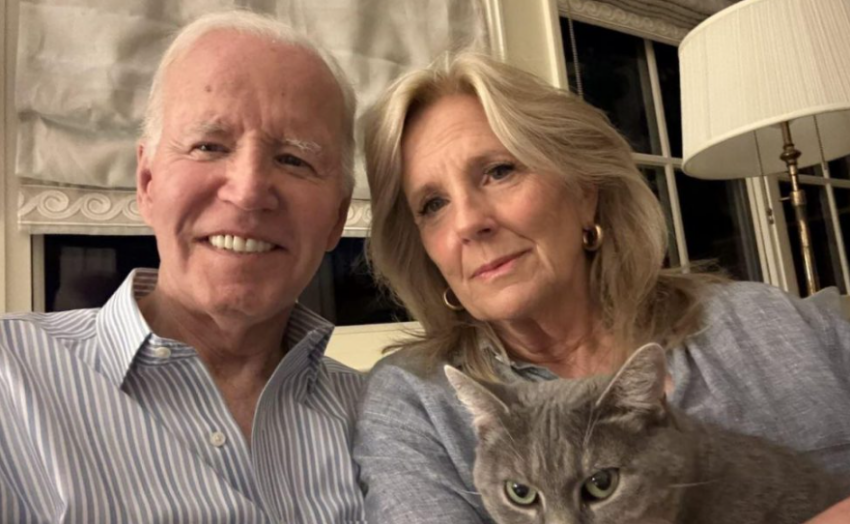 Këto fjalë ai i shoqëroi me një fotografi. Në të, përpos Bidenit dhe bashkëshortes, shihet edhe macja e tyre ngjyrë hiri.