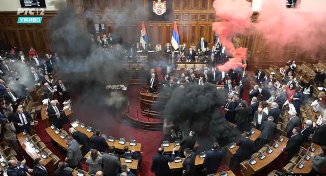 Një incident ndodhi të martën në Kuvendin e Serbisë, ku deputetët e opozitës u ngritën nga ulëset dhe aktivizuan mjete piroteknike në sallë.