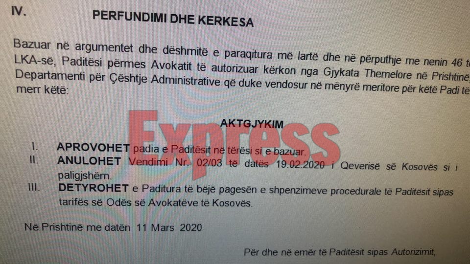 Ndryshe, Kabineti Qeveritar kishte votuar pro shkarkimit të bordit të drejtorëve të Telekomit të Kosovës më 19 shkurt.