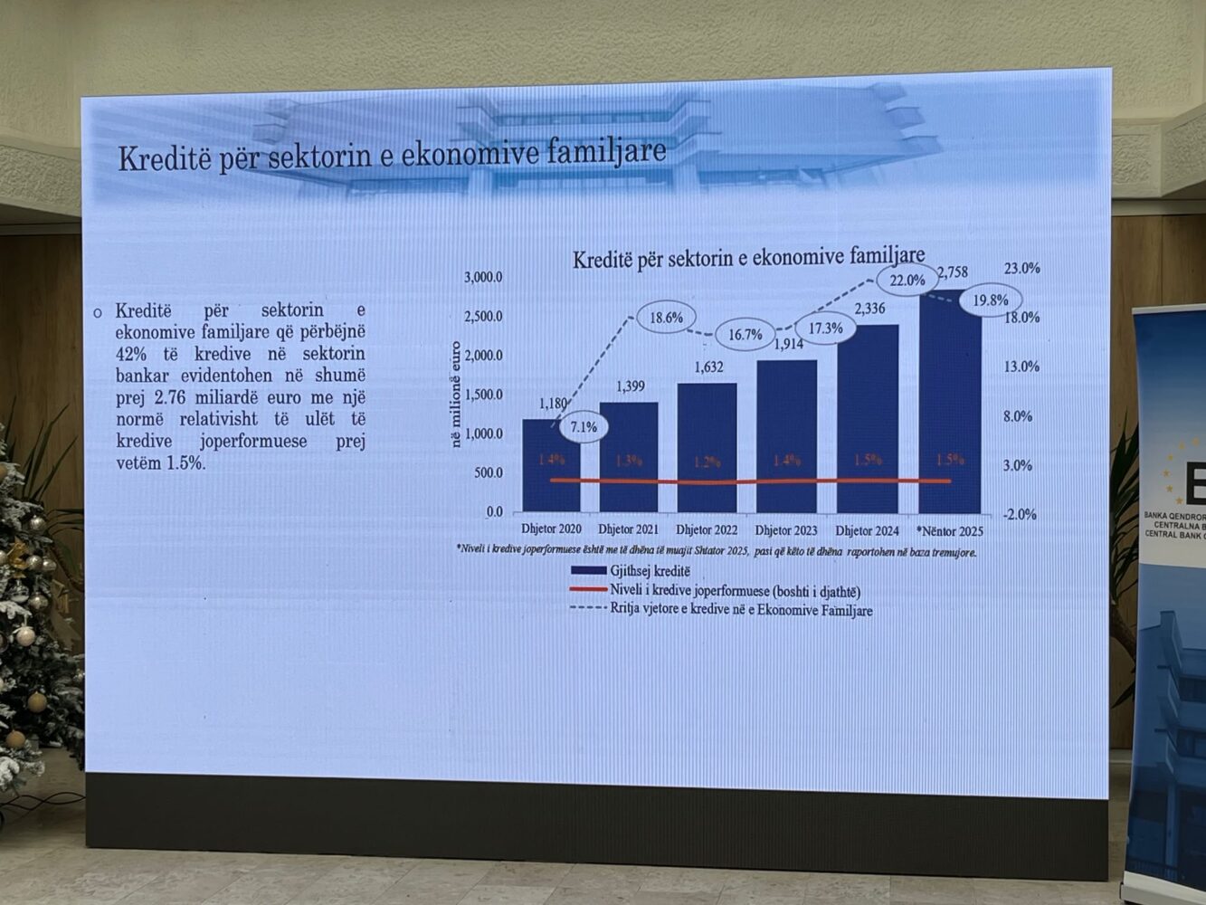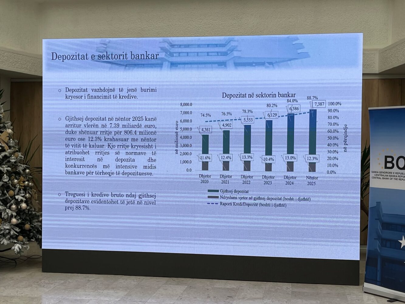 “Sa i përket indikatorëve makroekonomikë të vendit, ne presim që viti të mbyllet me rritje prej 3.9 për qind. Këto janë projeksione që dalin nga departamenti ynë për analiza financiare dhe stabilitet. Ky është në linjë me aktivitetin ekonomik që deri në gjysmën e parë të këtij viti u rrit me 3.8 për qind. Ne parashikojmë që vitin 2026 rritja ekonomike të shkojë në 4.1 për qind, që është e mbështetur nga konsumi privat. Sigurisht, rreziqet dhe pasiguritë mbeten, ato kanë të bëjnë me faktorët e brendshëm që karakterizojnë sistemin tonë ekonomik dhe politik, dhe po ashtu edhe nga rreziqet e jashtme dhe tensionet e tjera gjeopolitike, si dhe rritja e ngadalshme e eurozonës. Duke qenë një ekonomi e varur nga importi dhe gjithashtu e varur nga bashkëpunimi me BE-në, kjo është evidente se do të ketë ndikim”, tha ai.