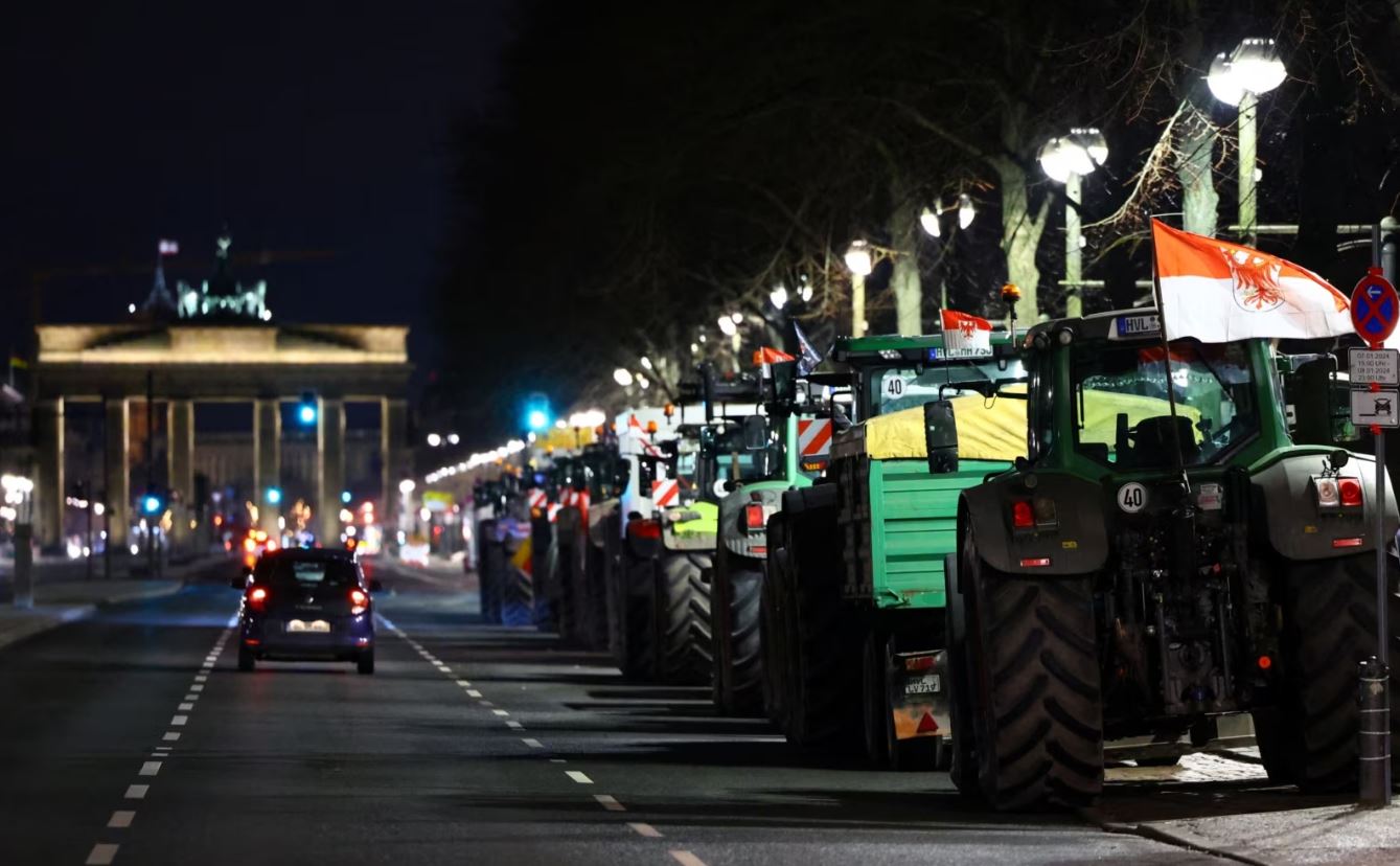 Në Berlin, dhjetëra traktorë të vendosur në rresht pamundësuan hyrjen në rrugën që dërgon drejt portës Brandenburg.