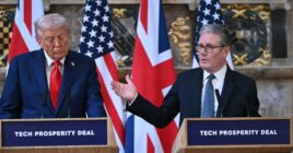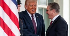 Trump dhe Starmer takohen në Britani, shtrëngojnë duart