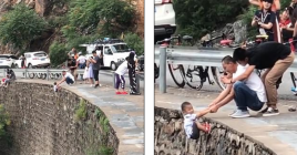 Burri nga Kina e mbanë djalin e tij të varur buzë një shkëmb...