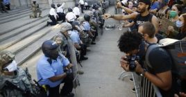 Policët amerikanë gjunjëzohen për t’u solidarizuar me protes...