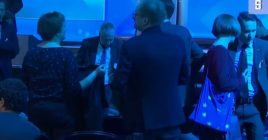 Ministri gjerman rrëzohet nga skena derisa po mbante fjalim