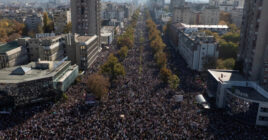 Turma të mëdha njerëzish bllokojnë Novi Sadin në njëvjetorin...