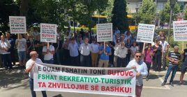 Banorët e fshatit Butovc protestojnë para komunës së Prishti...