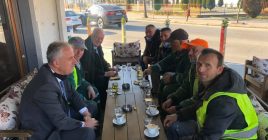 Kryetari Bali Muharremaj e pi kafen e mëngjesit me punëtorët...