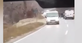 Pamje se si furgoni me para grabitet në pikë të ditës në rru...