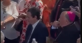 Kurti i shoqëruar nga Ipeshkvi Dodë Gjergji ia thotë këngës ...