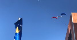 Parashutistët me flamuj mbi qiellin e Prishtinës