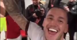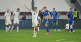 Lojtarët shqiptarë e këndojnë me krejt shpirtin himnin kombëtar, vërshëllehen me të madhe nga tifozët serbë