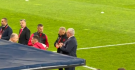 Duka i jep përkrahje kombëtares pak minuta para startit të ndeshjes, zbret te pankina kuqezi