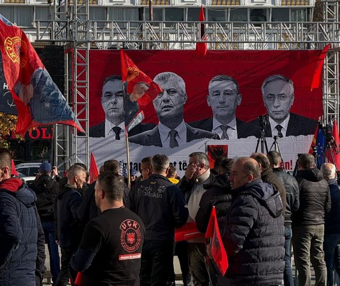 Po vazhdojnë përgatitjet e fundit në Sheshin “Skënderbeu” në Shkup ku edhe do të mbahet protesta për ish-krerët e UÇK-së, që është paraparë të fillojë në ora 13:00. Në hapësirën ku do të mbahen fjalimet është vendosur një fotografi e madhe me mbishkrimin “Çlirimtarët duhet të nderohen, jo të gjykohen”. Mbishkrim ky i vendosur poshtë fotografive të katërshes së Ushtrisë Çlirimtare të Kosovës (UÇK), Hashim Thaçit, Kadri Veselit, Jakup Krasniqit e Rexhep Selimit që po gjykohen padrejtësisht nga Gjykata Speciale në Hagë tash e më shumë se pesë vjet.